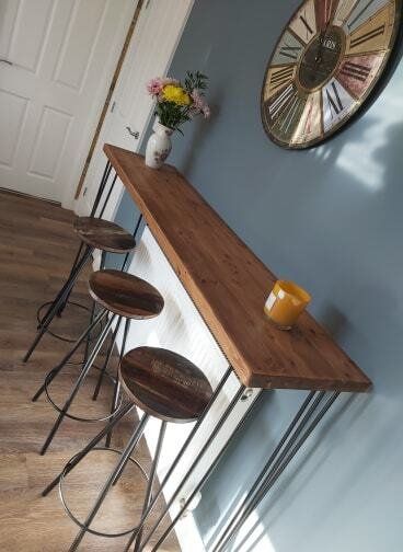 The Breakfast Bar features beautiful black 3-rod hairpin legs, providing an extra special touch to the design. However, alternative leg options can be sourced to suit your personal preferences.